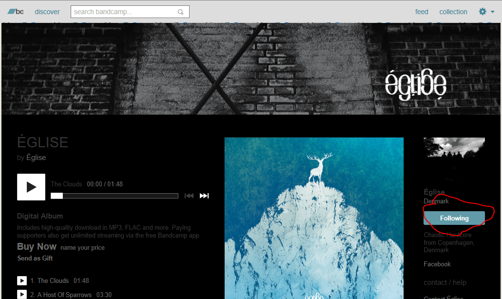 Found something you like? Be sure to hit the “Follow” button on the right side of the screen. This will not only send notifications to your feed, but even send you emails (if you want) letting you know when the band releases new material and merch. If you like being the first to know about the latest music from your favorite groups, there is nothing more satisfying than waking up to an email linking you right to the music. You can also follow OTHER USERS who share your tastes and see when they buy new music that you might want to check out.